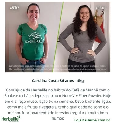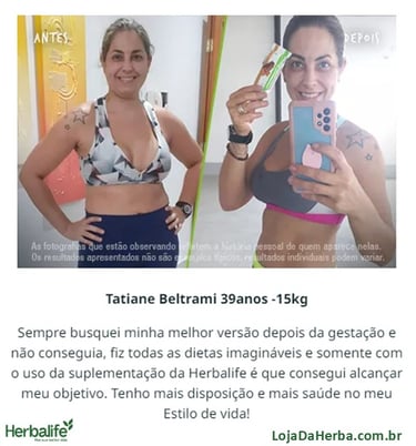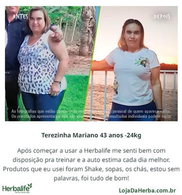 "Muito do meu sucesso na perda de peso se deve ao apoio que recebo da comunidade Herbalife. Encontrei um grupo de pessoas que se motivam continuamente e se incentivam a se tornarem versões melhores de si mesmas"